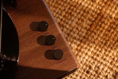 Elegant trefinish med gulldetaljer – gir stuen et stilig og tidløst utseendeLes mer om produktet