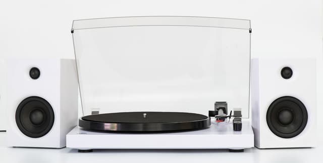 Sett med en platespiller og to høyttalere Spiller 33 rpm, 45 rpm og 78 rpm plater Auto stopp Støvlåk Pitch kontroll Volumkontroll Line in / Line Out Bluetooth mottaker 2 x 8 watt output Se vårt store utvalg av vinyler herLes mer om produktet