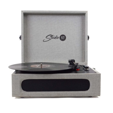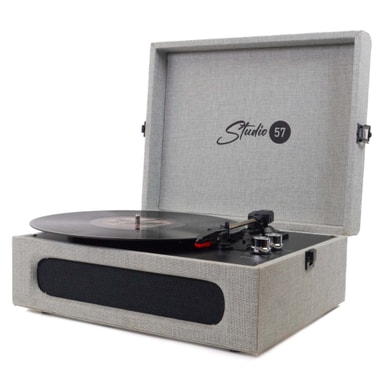 Dette bundle består av 1 Studio 57 Groovy Platespiller (Grå), Studio 57 Vinylholder for 12"" Plater & 1 Rensesett for Vinylplater med børste i...Les mer om produktet
