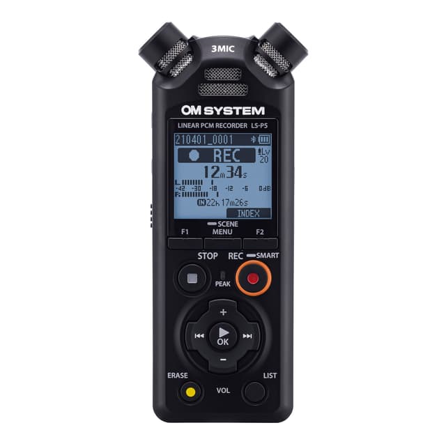 OM-SYSTEM LS-P5 Lineæ r PCM-Opptaker gir profesjonelle filmskapere, YouTube-entusiaster, musikere, studenter og journalister den velkjente lydkvaliteten og allsidigheten til lydopptakerne i LS-serien. Med kompakt og robust design er dette den ideelle medhjelperen, enten som frittstå ende opptaker eller kameramikrofon.