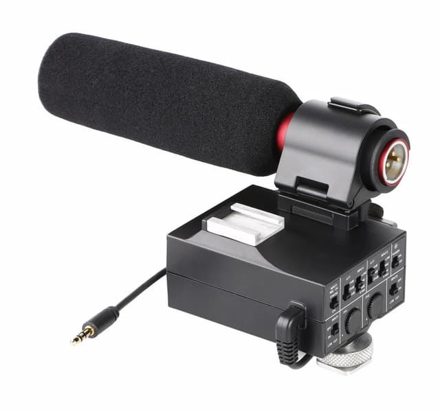 MixMic XLR Audio Adapter Kit med mikrofon gjør det mulig å koble kameraet til profesjonelt nivå miksekonsoller, mikrofoner og lydstudier. Adapteren har to standard XLR-terminaler for maksimal driftsfleksibilitet, som gir separat volumkontroll på to kanaler, innstilling av vind og vindstøyreduksjon. Mic / Line-inngangsvekslingen hjelper deg med å ta opp detaljerte opptaksnivåer og kontrollere lavfrekvent lyd.