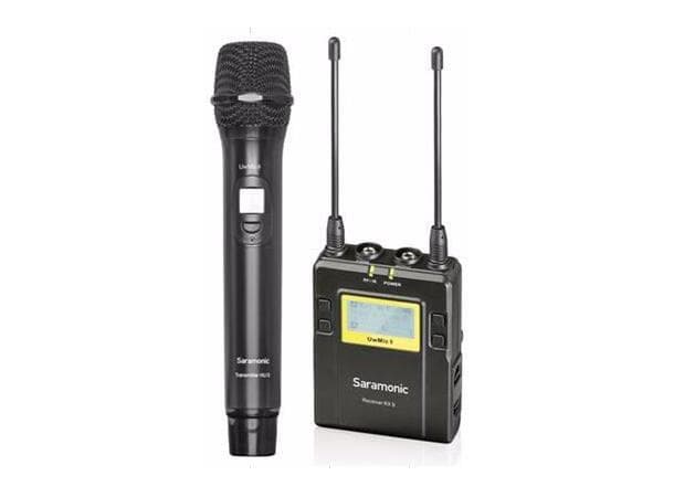 Saramonic UwMic9-RX9 er en kameramonterbar integrert trådløs mottaker. Den har bred brytende RF-båndbredde, en lettlest LCD-skjerm og infrarød synkronisering mellom sender og mottaker.