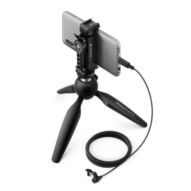 Sennheiser XS Lav USB-C Mobile Kit er designet for vloggere og innholdsskapere på farten, og inkluderer lavaliermikrofon med XS Lav USB-C klemme og Smartphone Clamp, samt Manfrotto PIXI Mini Tripod. XS Lav har en rundstrålende mikrofon med en 2 m kabel, mens Smartphone Clamp tillater både stående og liggende retning. Manfrotto PIXI har et låsbart kulehode som kan justeres ved å trykke på en knapp, slik at du enkelt kan stille vinkelen.
