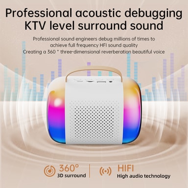 Krystallklar lyd: Opplev karaoke i profesjonell kvalitet med de innebygde doble mikrofonene og avansert støyreduksjonsteknologi, som sikrer at stemmen din fanges opp med eksepsjonell klarhet og kvalitet.