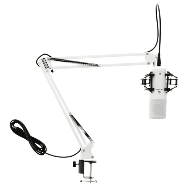 Innox IVA 08 USB Mikrofon Boomarm - Hvit Perfekt for spillere, podcastere og youtubere. Med denne komplette kringkastingsløsningen kommer du raskt i gang med opptakene. Lang arm som er fleksibel på to ledd. Kraftig klemmeklemme. Innebygd og intern USB-B-kabeldesign minimerer kabelrot. Stilig og minimalistisk sortlakkert design.
