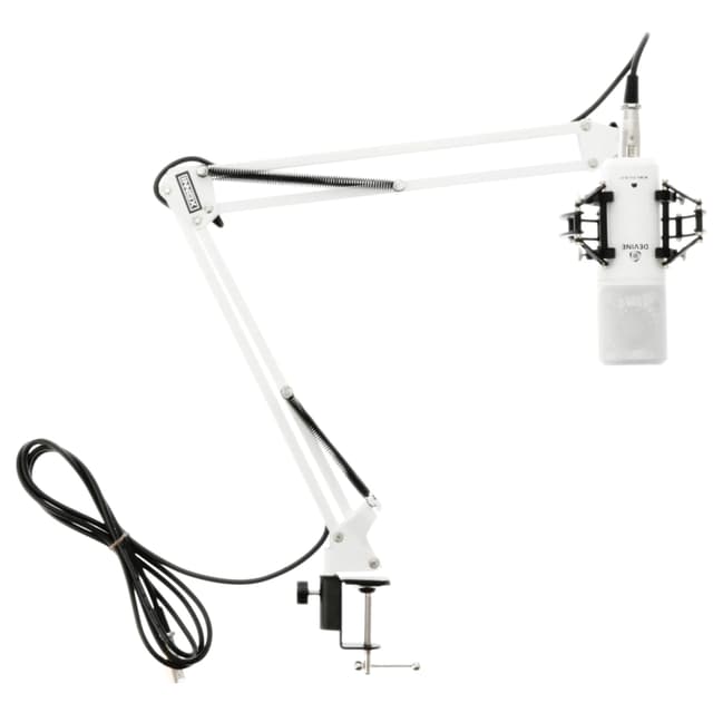 Innox IVA 08 XLR Mikrofonbomarm - Hvit Ideell for spillere, podcastere og youtubere. Total mikrofonarmløsning - kom starte opptaket raskt. Bomarmen er superjusterbar og fleksibel på to ledd. Kraftig klemmeklemme. Innebygd og intern XLR-kabeldesign minimerer kabelrot. Stilig og minimalistisk sortlakkert design.