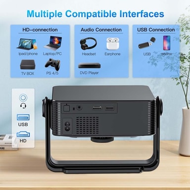 360 Degree Adjustment: The 360-degree adjustable design allows you to project onto any wall or surface, providing flexibility in placement and viewing angles. Whether you want to project onto the ceiling for a relaxing movie night in bed or onto a wall for a presentation, this projector can adapt to your needs.