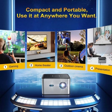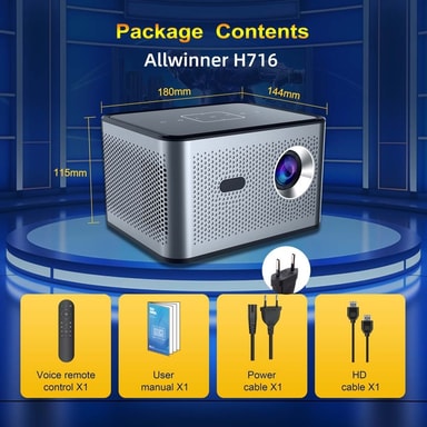 Kompakt og allsidig design: Med sine kompakte dimensjoner (18cm x 14.4cm x 11.5cm) er denne projektoren lett å plassere og transportere. Den er ideell for bruk i ulike rom, fra små leiligheter til store konferanserom. Den allsidige designen gjør den også egnet for både hjemmekino, presentasjoner på kontoret og underholdning på hotellrom. Den sølvfargede finishen gir et moderne og stilrent utseende som passer inn i de fleste interiører.