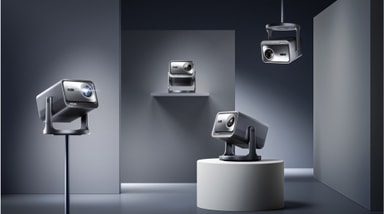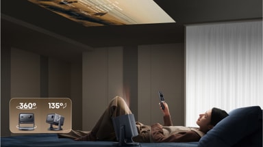 Takket være denne funksjonen får du total fleksibilitet i plasseringen av projektoren, med et gimbal-design med 360° horisontal og 135° vertikal bevegelse. Auto Keystone med automatisk vertikal og manuell horisontal justering sikrer at bildene alltid vises optimalt.