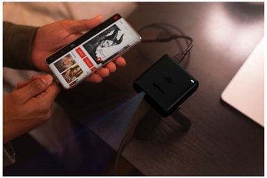 Se på dine favorittfilmer på en enkelt måte, takket være 3 timer med gjenoppladbar batteritid. Du kan også bruke projektoren som en powerbank til dine smartenheter.