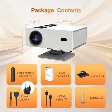 Trådløs skjermspeiling: Del innhold fra smarttelefonen eller nettbrettet trådløst til projektoren. Perfekt for å vise bilder, videoer og presentasjoner på en større skjerm. Den trådløse skjermspeilingen gjør det enkelt å dele innhold med venner og familie, eller å presentere ideer på jobben. Du trenger ingen kabler eller adaptere, bare koble til via WiFi og speil skjermen din på et øyeblikk.