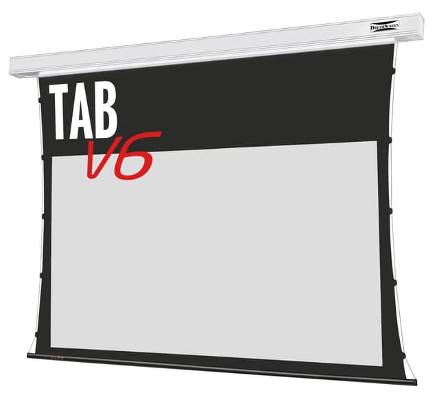 The tab tension mechanism provides you with the most even surface available on a cassette based screen solution. The Tab V6 also features a vast selection of integrated control options such as a cordless 12V trigger and RS232, a brand new 6. generation reference quality D65 tuned screen fabric in either grey or white as well as an updated, sleek cassette design available in both black and white.