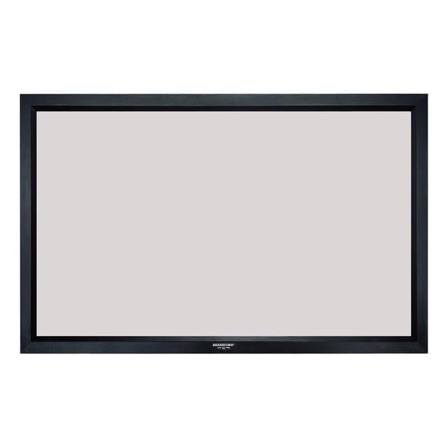 Grandview rammelerret med ekte aluminiumsramme. Høykontrast grå duk med gain 08 Maskering i form av sort fløyelsdekket aluminiumsramme rammebredde 8 cm. Rammen kommer i tillegg til oppgitt bredde/høyde. Enkel montering.