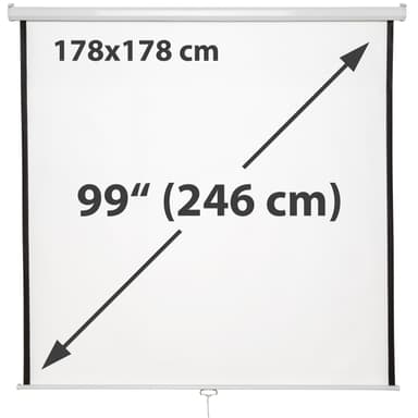Denne projektorduken gir deg den ultimate hjemmekinoopplevelsen. Finnes det noe bedre enn å se på filmer, serier, dokumentarer hjemme i HD-kvalitet og med stort bilde? Men også gjestene dine kommer til å bli opprømte av en filmvisning i stuen. Naturligvis egner lerretet seg også for forelesninger og seminarer. Den ekstremt lave forsterkningsfaktoren på 1,0 gir optimale resultater for hjemmekinobruk. Duken kan trinnløst stilles inn for 1:1, 4:3, 16:9 og andre format og er dessuten egent for 3D og HD. Tøyduken har belegg av vinyl. Svarte kantmasker og en svart bakside sikrer beste kontrastresultat. Den integrerte stangvekten sikrer frihet fra rynker.