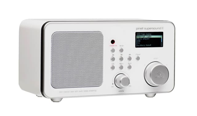 Pinell Supersound DAB internettradio i ren, hvit design. Kobles til ditt trådløse hjemmenettverk for avspilling av dine favorittkanaler. Velg stasjon kategorisert etter land eller sjanger. Tilkobling via PC er ikke nødvendig. Fjernkontroll er inkludert.