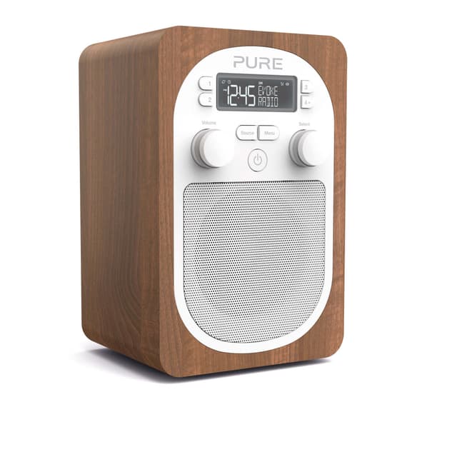 Det mest kompakte medlemmet av den ikoniske og prisbelønte evoke-familien. Evoke h2 er en bærbar dab digital og fm-radio med ekte fernisspanel (eik eller valnøtt) i moderne stil. H2 er en oppdatering av evoke d2. Forskjellene er bedre lyd og nytt design. Flott utseende, topp lyd det stilige utseendet på evoke h2 er ikke bare et skall - trepanelet, en avstemt høyttaler og den siste digitale forsterkeren gir overlegen lyd i sin kategori - slik at det høres bra ut også. Slå over til digital radio dab digitalradio gir deg detaljert kvalitetslyd, massevis av stasjoner (noen er kun digitale) og rulletekst med navn på sanger, programinfo og mye mer. Digitale radioer finner automatisk alle tilgjengelige stasjoner og lar deg selv velge dem etter navn. Du får også fm for de stasjonene som foreløpig ikke har blitt digitale. Kompakt, men stappfull av funksjoner evoke h2 har et lite fotavtrykk som gjør den perfekt ved sengen eller som en kjøkkenradio. Funksjonene innebærer 20 forhåndsinnstillinger (med fire hurtigtaster), kjøkkenklokke og innsovningsfunksjon, alarm med lydsignal eller radio, inngang for stereo-hodetelefon og aux-inngang for ipod eller mp3-spiller. I tillegg kan evoke h2 brukes med pure chargepak b1 oppladbart batteri for mobil bruk. Tekniske data: radio: digital og fm, britiske produkter mottar dab og fm produkter for andre land mottar dab/dab+/dmb-radio/fm, avhengig av region høyttaler: fullforsterket 3"""" styresender - lydeffekt 1,6w rms innganger: 5,5 v dc strømstøpsel (230 v medfølger), mini usb-kobling for produktoppdateringer, 3,5 mm line-in for tilleggsenheter utganger: 3,5 mm stereo strømforsyning: 230 v ac til 5,5 v (1,0 a) dc eksternt strømstøpsel (medfølger) eller alternativt chargepak b1 pakke med oppladbare batterier antenne: teleskopantenne garanti: omfattende 3-årig garanti mål: 115 mm bredde x 180 mm høyde x 120 mm dybde