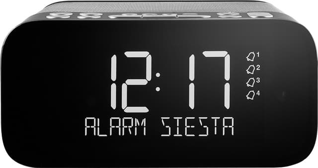 Siesta s6 er mer enn en førsteklasses nattbordsradio. Våkne til den krystallklare lyden av din favorittradiostasjon, enten det er dab/dab+ eller fm, eller nyt favorittmusikken på smarttelefonen eller nettbrettet via bluetooth. Med det store crystalvue+-displayet uten kanter vår hittil skarpeste skjerm i serien, er det lett å lese klokkeslettet eller radioinformasjonen uansett hvor du befinner deg i rommet. Brukervennlige kontroller med bakgrunnslys og et stort berøringssensitivt felt for slumrefunksjon sørger for at du kan betjene siesta s6 med noen få berøringer. Den har også en innebygd usb-port for lading av dine mobile enheter og en hodetelefonutgang for private lytteopplevelser. Siesta s6 er produsert av spesielt utvalgte materialer som bidrar til en luksuriøs og sofistikert stil i soverommet. Bluetooth-tilkobling bruk siesta s6 som en trådløs høyttaler med fantastisk lyd, og strøm lyd komfortabelt fra sengen. Dette er mulig via smarttelefon, bærbar datamaskin eller nettbrett. Siesta-knappen tidsuret til siesta betjenes med én knapp, slik at du raskt kan ta en lur uten å måtte gå gjennom hele prosedyren for alarminnstilling. Det er bare å trykke på """"siesta"""" én eller flere ganger for å aktivere en """"power nap"""" fra 5 minutter med varierende trinn opptil 90 minutter. Alarmlyden utløses, slik at du kan våkne uthvilt når den angitte tiden er gått! Crystalvue+-display det store, ultraklare displayet med bred synsvinkel har automatisk dimming og er det skarpeste hittil i siesta-serien. Displaylysstyrken kan stilles inn slik at den justeres automatisk, slik at det blir lett å lese klokkeslett eller radioinformasjon uansett hvor man befinner seg i rommet. Med redusert skjermblending og klare sifre er crystalvue+-displayet alltid synlig også i de mørkeste omgivelser, noe som bidrar til en god natts søvn. Usb-port for lading av enhetene dine hold telefonen, nettbrettet eller andre enheter fulladet når de er koblet til den innebygde usb powerport, slik at de alltid er klare til bruk. Imponerende lyd siesta s6 har en 2,5"""" bredbåndhøyttaler som drives av en digital forsterker for å gi høy imponerende lydkvalitet fra en kompakt klokkeradio. Innstillingen av bass og diskant kan tilpasses for optimal lytteopplevelse. Kontroller som alltid er synlige med praktisk, berøringssensitivt snoozetouch-felt for slumring av alarm og brukervennlige knapper med bakgrunnslys er siesta s6 enkel å betjene, også når det er helt mørkt i omgivelsene. Flere stasjoner, digital kvalitet dab digitalradio gir deg et omfattende innhold med lyd av høy digital kvalitet, hvorav mye kun er tilgjengelig på digitalradio. Dab-/dab+-radioer finner automatisk alle tilgjengelige stasjoner og lar deg selv velge dem etter navn. Du har også tilgang til fm for de stasjonene som foreløpig ikke har blitt digitale. Tekniske spesifikasjoner: radio: digital (dab/dab+) og fm frekvenser: dab/dab+, fm 87.5 - 108mhz bluetooth: bluetooth v4.0 driftsfrekvensområde: 2402 - 2480 mhz maksimal utgangseffekt: < + 4 dbm (eirp) høyttaler: bredbånd 2,5""""-driverenhet skjerm: crystalvue+ lcd display forhåndsinnstillinger: 40 (20 digitale og 20 fm) innganger: 5,5 v (2 a) micro-usb-strømstøpsel (også for programvareoppdateringer) utganger: usb-a (1 a) utgang for lading av telefon eller nettbrett, 3,5 mm utgang for hodetelefoner antenne: ledningsantenne