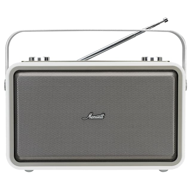 Radionette Menuett-radio kan du enkelt ta med deg når du gjør husarbeid, jobber i hagen eller bare slapper av og griller med venner. Lytt til analog eller digital radio, strøm favorittsangene dine fra enheter med Bluetooth. Radionette Menuett er også utstyrt med blant annet klokke, alarm og slumrefunksjon. Radioen har OLED-skjerm, aluminiumhåndtak og oppladbart batteri. Alt dette kommer i et design i elegant hvitmalt trekabinett.