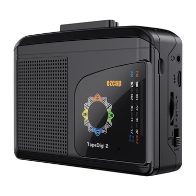 Ezcap TapeDigi 2 USB Cassette Converter konverterer analoge kassetter til digitale lydformater. Konverteren kan ta opp både kassettbånd og FM/AM-radio til 128Kbps MP3- eller WAV-format. Konverteren kan også spille av kildene via den innebygde høyttaleren eller hodetelefonutgangen. Koble konverteren til datamaskinen og ta opp enkelt kildene dine ved hjelp av hvilken som helst opptaksprogramvare.