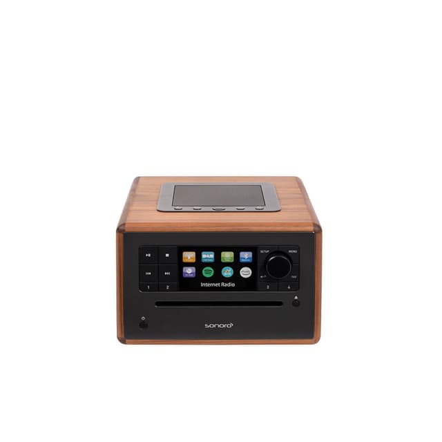 Elite. Kompakt musikksystem med FM/DAB+. Internettradio, CD, Dual Alarm, Wifi, Streaming og Bluetooth. LCD-skjerm med LUX-sensor for automatisk variabel lysstyrke. Håndlaget trehus og høykvalitets pianofinish. Fjernkontroll. Designet og utviklet i TysklandDet siste tilskuddet til Smart-sortimentet fra Sonoro er perfekt for et soverom eller t arbeidsrom, og gir deg en rekke muligheter til å lytte til favorittmusikken din. Velg mellom FM eller DAB+ digital radio, tilgang til mer enn 25.000 nasjonale og internasjonale radiostasjoner takket være den integrerte internettradioen, nyt lyden fra en CD eller stream musikken din via Spotify Connect, Deezer og AmazonMusic streamingtjenester. ELITE er også utstyrt med en dobbel alarmfunksjon, en automatisk dimbar skjerm som tilpasser seg miljøet, og en USB-port med ladefunksjon. Dette lydsystemet fordeler jevnt en 360° lyd gjennom hele rommet takket være den oppovervendte høyttaleren. Dens kompakte dimensjoner og minimalistiske design med et håndlaget trehus, dekket med en pianolakk av høy kvalitet, gjør at ELITE smelter harmonisk inn i ethvert rom. ELITE kan enkelt betjenes via knapper direkte på enheten, eller med den medfølgende infrarøde fjernkontrollen. Inngang utgang DAB/DAB+ digital radio og FM-radio med 4 forhåndsinnstilte radiostasjoner Bluetooth® trådløs streamingteknologi (A2DP, AVRCP) for trådløs musikkstreaming USB-port 5V/2.1 A med ladefunksjon og musikkavspilling Innebygd CD-spiller (CD, CD-R, CD-RW, MP3-CD, WMA) med repeterings- og blandefunksjon Hodetelefonkontakt FM/DAB/DAB+ 75 Ohm-antennen 15,5V, 2,9A hovedstrøm AC 100-240V 50/60Hz Tyverisikringsfunksjon Teknologi 360-graders lydopplevelse takket være den oppovervendte høyttaleren 3-tommers høyttalersystem med bassrefleksjon (Wizard cone) Justerbare bass- og diskantinnstillinger som volum, flat, jazz, rock, film, klassisk, pop, nyheter FM-radio og DAB, DAB+ digital radio med 4 forhåndsinnstilte radiostasjoner Automatisk eller manuell radiojustering 4 forhåndsinnstilte radiostasjoner Slot-In CD-spiller (CD, CD-R, CD-RW, MP3-CD, WMA) med gjenta en, gjenta plate, shuffle og CD gjenoppta funksjon Bluetooth® -teknologi for trådløs musikkstreaming USB-port for avspilling og lading Våkne-funksjon og slumrefunksjon Dobbel vekkefunksjon (2-veis timer) Våkn opp med FM-radio, DAB+ -radio, internettradio, alarmtone Søvnfunksjon med innstilling i 15-minutters intervaller (15, 30, 45, 60, 90 min.) LCD-skjerm med LUX-sensor for automatisk variabel lysstyrke Kryptering: WEP, WPA, WPA2 (PSK), WPS Fjernkontroll (infrarød) Aux-in for andre eksterne avspillingskilder som smarttelefon etc. Brukervennlig og intuitiv menyenavigasjon Dimensjoner: 21,0 x 25,7 x 14,0 cm (BxHxD) Vekt: 3,6 kg