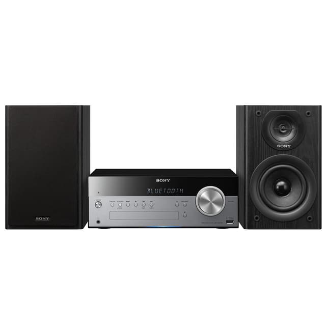 Sony Micro alt-i-ett HiFi-system med to høyttalere lar deg nyte radio eller favorittmusikken din i høy kvalitet, enten du foretrekker å høre den fra CD, USB-avspilling eller ettrykksstrømming via Bluetooth.