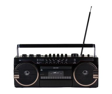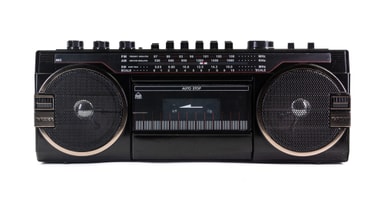 Stilig retro kassettspiller med Bluetooth Kassettbånd, Bluetooth, radio (FM & AM), SD-kort og USB Kan også brukes som nødradio HodetelefonutgangLes mer om produktet