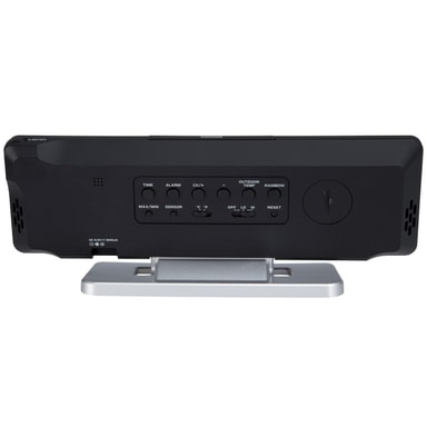 Den digitale værstasjonen WS-2500 fra Alecto med trådløs utendørssensor har et elegant design. WS-2500 starter umiddelbart med signalet fra utendørssensoren, forutsatt at utendørssensoren er fylt med 1,5 Volt AA-batterier og værstasjonen er koblet til adapteren. Det rektangulære displayet på den trådløse værstasjonen viser ikke bare klokkeslett, dato, inne- og utetemperatur og lufttrykk, men også luftfuktigheten inne og ute og værvarselet. Værmeldingen er animert med lettforståelige ikoner. Basert på lufttrykket beregner værstasjonen været for de neste 12-24 timene. Alecto WS-2500 har justerbare alarmfunksjoner for fallende og stigende temperaturer og luftfuktighet.