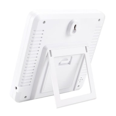 Digital innendørsklokke med stort display som viser klokkeslett, dato, temperatur (° C / ° F omskiftelig), luftfuktighet, komfortnivå etc. Varslingsintervall for temperatur og fuktighet stilles inn etter behov.