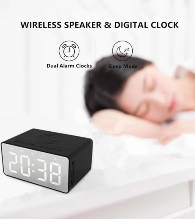 1 x LED vekkerklokke med trådløs høyttaler og trådløs lading