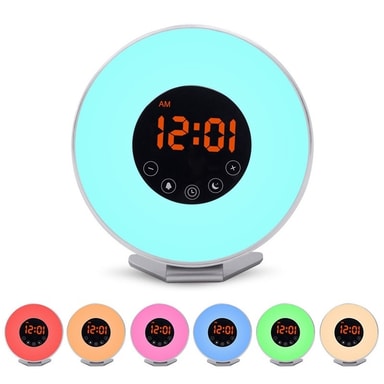 Vekkerklokken har 7 forskjellige farger. På displayet finner du 5 knapper med unike funksjoner sammen med den store og tydelige klokken. Hjelper deg med å våkne på en rolig og behagelig måte.Våkn opp på riktig side hver dag!