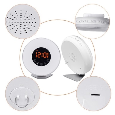 Klokken skaper et naturlig lys som gradvis øker frem til det er på tide å stå opp, akkurat som en soloppgang. Den begynner å lyse svakt en liten stund før du står opp, og lyser deretter stadig sterkere frem til den tiden alarmen er stilt inn på. På det tidspunktet vil den lyse så sterkt at du ikke vil kunne sove lenger. I tillegg kan du velge mellom lyd eller FM-radio som alarm, slik at du ikke risikerer å forsove deg. Med denne klokken våkner du garantert på riktig side av sengen hver dag!En mer naturlig oppvåkning
