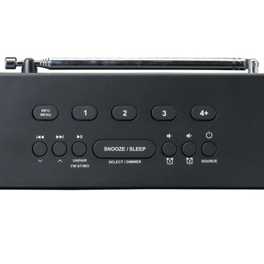Denne klokkeradioen har også Bluetooth® slik at du enkelt kan streame musikk fra smarttelefonen eller Bluetooth®-enheten.