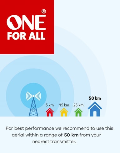 All For One utendørs Yagi-antenne med forsterker leverer krystallklare signaler i Full HD-kvalitet i et solid og lettmontert design.Les mer om produktet