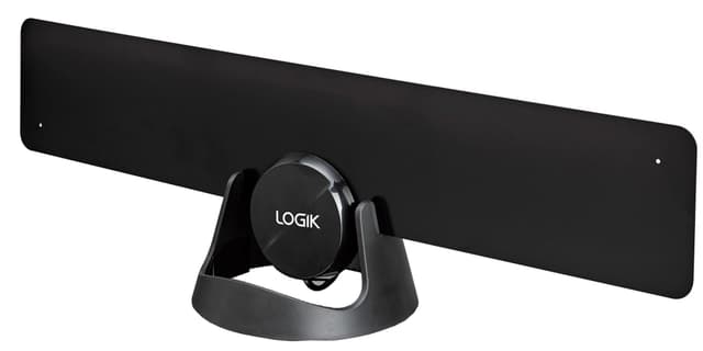 Denne tynne innendørsantennen fra Logik fungerer som mottaker at lokale og regionale VHF og UHF TV-signaler.