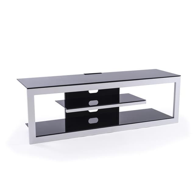 SMILE TV stand 1400 mmAssembled in just 5 minutes no tools required• Upper shelf in black tempered 8 mm glass• Middle and lower shelves in black tempered 6 mm screen printed glass• Steel structure textured and satin white epoxy painting• Upper shelf locked• Openings and cable duct at the rear• Assembly in 5 min no tools neededDescriptionTV stand 1400 mm ColorBlack + White  Functionwithout column Size of your screen40-75 Max weight60 Materialsteel + tempered glass FinishWhite textured epoxy paint with sating finish + black screen-printed glass Cable ManagementYes Ground measurement1400 x 400 Installation time Persons for mounting