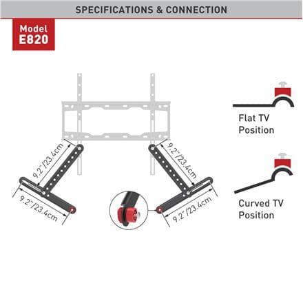 Spesielle funksjoner: Sound Bar-feste for vekt opptil 14,3 lbs/6,5 kg. Passer for både flate og buede TV-er opp til 80"". En konjunktiv struktur gir ultimat kompatibilitet med et bredt spekter av TV-er og høyttalerstørrelser. En spesiell låsemekanisme sikrer tilkoblingen av høyttaleren til festet.