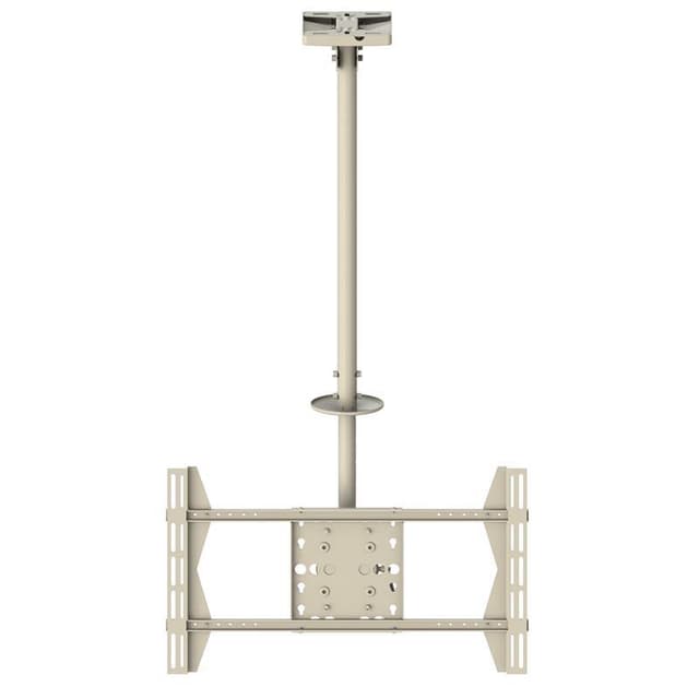 M Public Ceilingmount Large Single White 3000 The new M Public Ceilingmount Large Single is a sturdy single flat panel ceiling mount with VESA adapters supporting up to 800x400. The new M Public Ceilingmount Large Single is a sturdy single flat panel ceiling mount with VESA adapters supporting up to 800x400.The Ceilingmount Large is ideal for any large screen ceiling application – whether TV viewing or digital signage.Widely used in a variety of environments this ceilingmount is truly versatile and made with most aspects and installation situations in mind. The M Public Ceilingmount Large Single can even handle a sloping ceiling by its unique and flexible ceilingplate.Change the screen from landscape to portrait by turning the screen without demounting it. HighlightsPortait or landscape position of screen possible by demounting.Includes VESA adapters for compatibility up to VESA 800x400.Variable tilt with locking pin mechanism for precise positioning.Integrated cable management routes cables through ceiling plate.Power click install for easy fast and safe installation.Ceiling plate included.Complete hardware kit included.TUV approved.SPECIFICATIONM Public Ceilingmount Large White SingleFor screen size:55-70VESA standard:200x200 300x300 400x200 400x300 400x400 600x400 800x400 mmArticle No:7 350 073 732 517Pillar length:Min: 860 — Max: 3130 mmExtension pipes:Optional max: 3000mmWeight:83 kgTilt:-5º—+15ºColour:White RAL9016Max load:80 kgPortrait / Landscape mode:YesTurn:-30º—+30ºMaterial:SteelWarranty:5 years