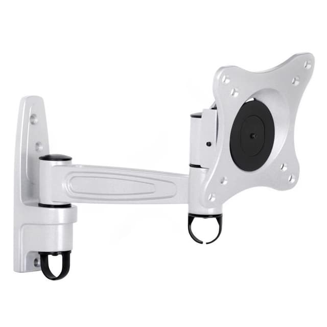 Flexarm II Veggfeste med 2 leddet armpasser VESA 75x75 100x100 200x100 200x200 mm kan tiltes +/-15º vris +/- 90º og roteres 360º perfekt til alle installasjoner. kan sikres med den inkluderte hengelåsen. Salgsfremmende forpakning Max vekt: 25 Kg Max 25 cm ut fra vegg Farge: Hvit Kartong = 10 stk