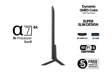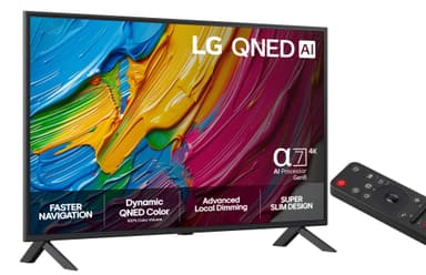 QNED80 kombinerer α7 AI Processor 4K Gen8 og QNED evo for levende farger og suveren kontrast. Advanced Local Dimming og HDR10 Pro forbedrer bildene, mens den slanke 29 mm designen med justerbart stativ gir flott ytelse og passform.Les mer om produktet