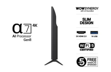 Med 4K HDR, oppgradert α7 AI Processor og webOS-tilpasning leverer UA75 skarpe bilder, jevn ytelse og enkel strømming i en slank design. En flott TV til hverdagens underholdning – nå kompatibel med Magic Remote og støtte for boligens smartfunksjoner.Les mer om produktet