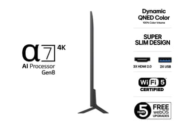 Drevet av α7 AI-prosessoren forbedrer LG QNED hver bilde med skarpere detaljer, rikere farger og klarere lyd. Den analyserer innholdet ditt i sanntid og optimaliserer opplevelsen for strømming, gaming og direktesendt TV. Smart ytelse – alltid på topp.