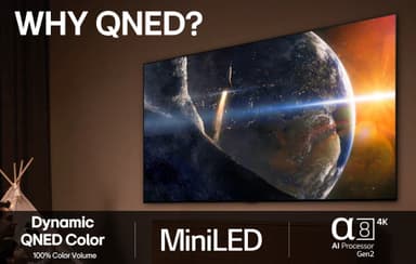 Dette innebærer en kombinasjon av α8 AI Processor 4K, høy bildefrekvens og QNED fargeforbedrende skjermteknologi. Alle QNED evo TV-er har disse funksjonene, og dette garanterer deg 100 % fargevolum, altså en betydelig økning i fargespektrum i forhold til fjorårets modell og støtte for Dolby Vision.