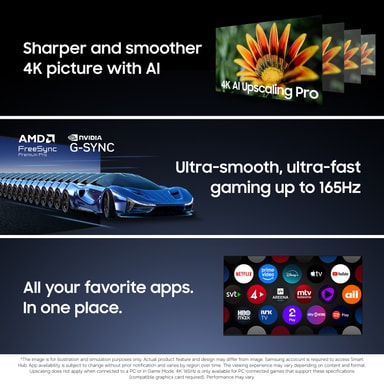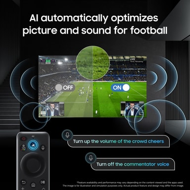 Ved hjelp av 128 nevrale KI-nettverk forbedrer NQ4 AI Gen3 Processor bilde- og lydkvalitet. Enten du strømmer, spiller eller ser på sport, kan du nyte skarpere og jevnere bilder.