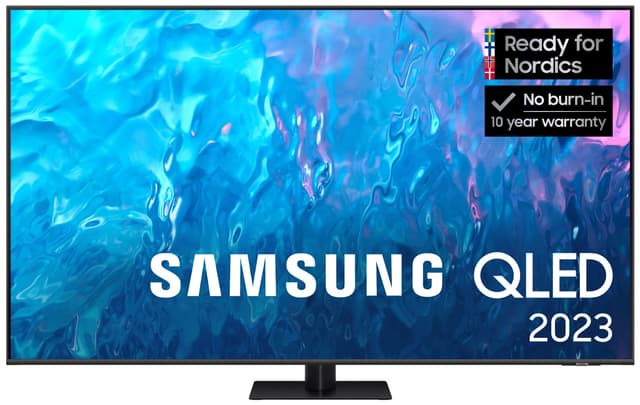 1 Kilde – Omdia, januar 2023. Resultatene er ikke ment som en anbefaling av Samsung. Tillit til resultatene skjer på tredjeparts eget ansvar. 2 Ifølge en spørreundersøkelse gjennomført av Kantar Sifo i januar 2023 er 93 % av de spurte fornøyde med sin Samsung-TV. Resultatene er ikke ment som en anbefaling av Samsung. Tillit til resultatene skjer på tredjeparts eget ansvar.3 Gjelder ved kjøp av utvalgte projektormodeller og utvalgte 2023-modeller av Samsung-TV på samsung.com og hos utvalgte forhandlere i perioden 20.04–31.12.2023. Underlagt begresninger, og strømmetjenestetilbudene som er inkludert, kan variere under kampanjen. Krever at kunden oppretter konto hos den aktuelle strømmetjenesten. Samsung kan vise reklame og kampanjer på Smart TV-grensesnittet og i applikasjoner. Tilgjengeligheten av apper kan variere over tid og avhengig av region. Vilkår: samsung.com/no/tvs/smart-tv/smart-start. 4 Garantien gjelder i 10 år fra kjøpsdato. Krever en kopi av kjøpskvittering og registrering på Samsungs nettsted innen 90 dager etter kjøp. Gjelder for kjøp av utvalgte 2023 TV-modeller mellom 20.04.2023 og 31.03.2024. Se vilkår på: samsung.com/no/offer/offline/screen-burn-warranty