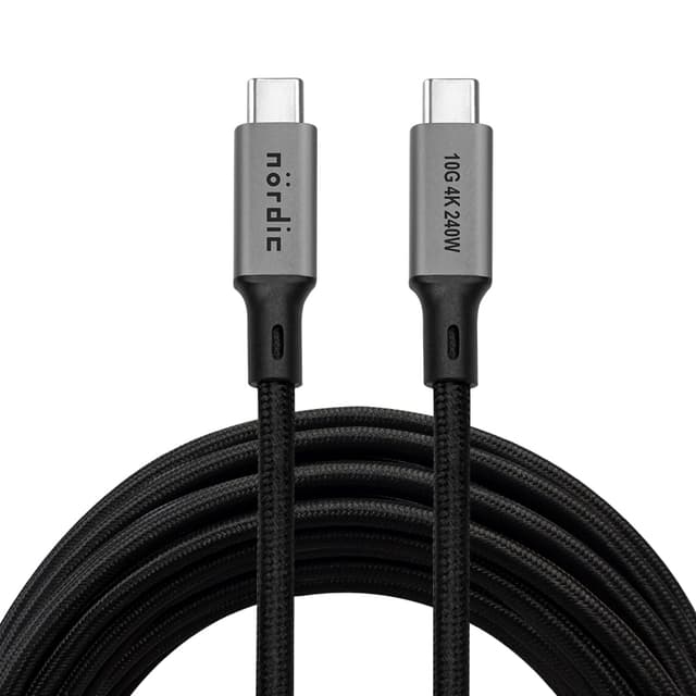 Marketplace - Produktet selges og leveres av vår Partner. Produktet kan ikke returneres til eller bestilles i Elkjøps butikker. Kontakt med partner gjøres via Min side. Selges av:99.-79.-Ekskl. mvaKun online | Levert av vår Partner444398NÖRDIC 50 cm USB 3.2 Gen 2 USB-C til C nylonflettet kabel PD3.1 240W 20G 4K60Hz svart